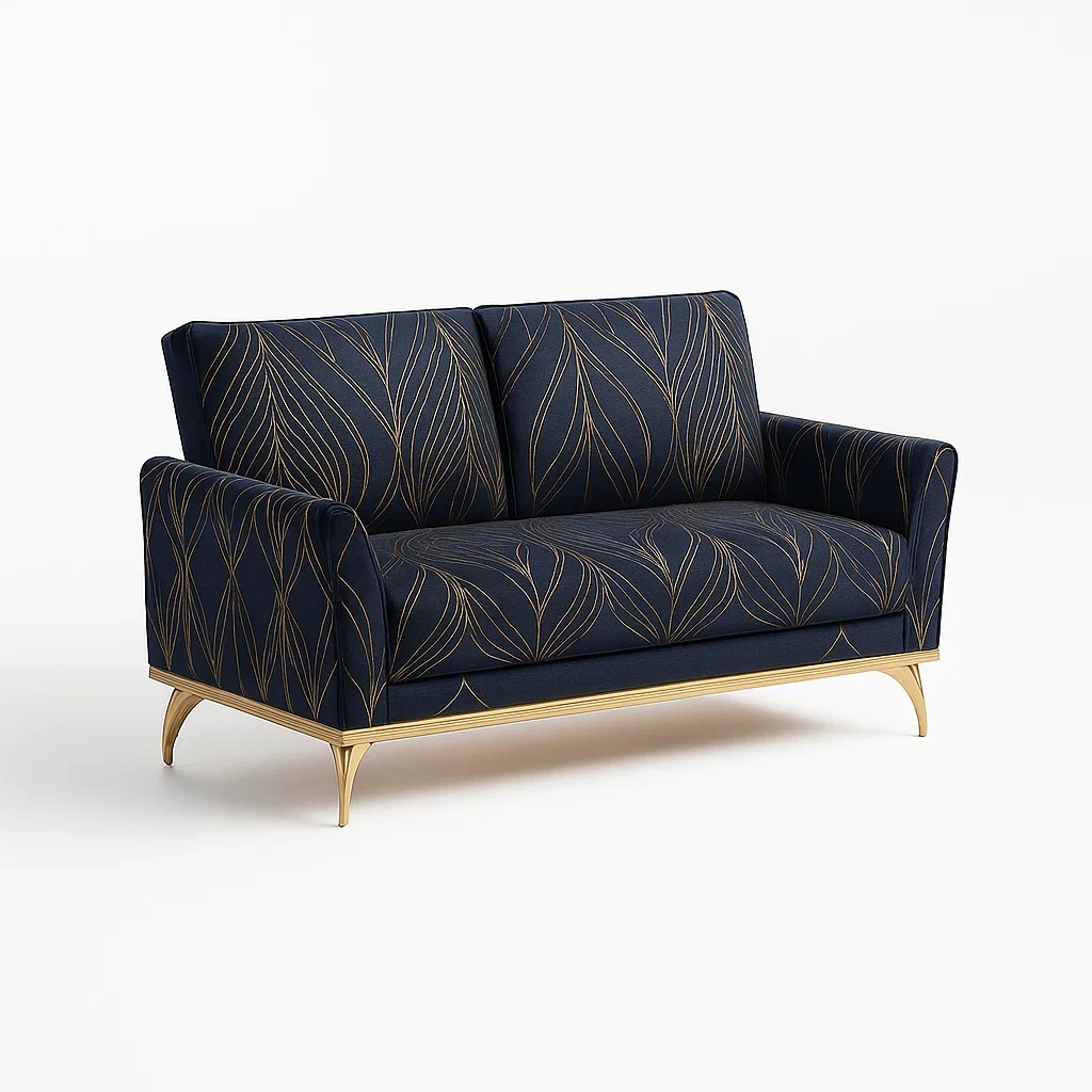 Divano a due posti in tessuto con base in metallo dorato 150 cm