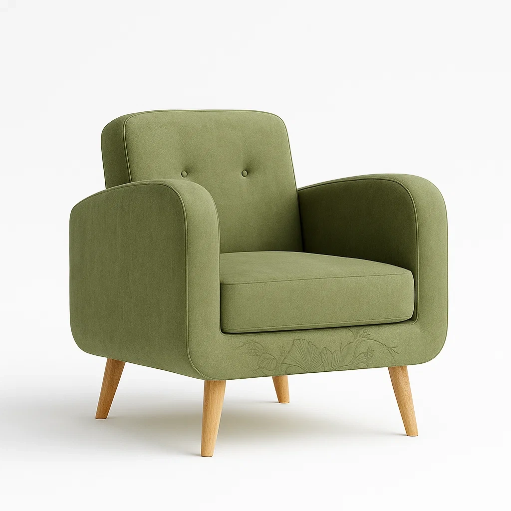 Materiale: Struttura in legno, imbottitura del sedile in schiuma poliuretanica, rivestimento in tessuto poliestere.